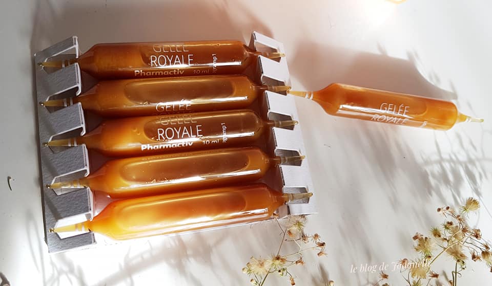 Je prends aussi de la gelée royale dès l’arrivée de l’hiver ! plus pratique sous cette forme en ampoule car j’ai essayé en pot et j’avais beaucoup de mal avec le goût !!!