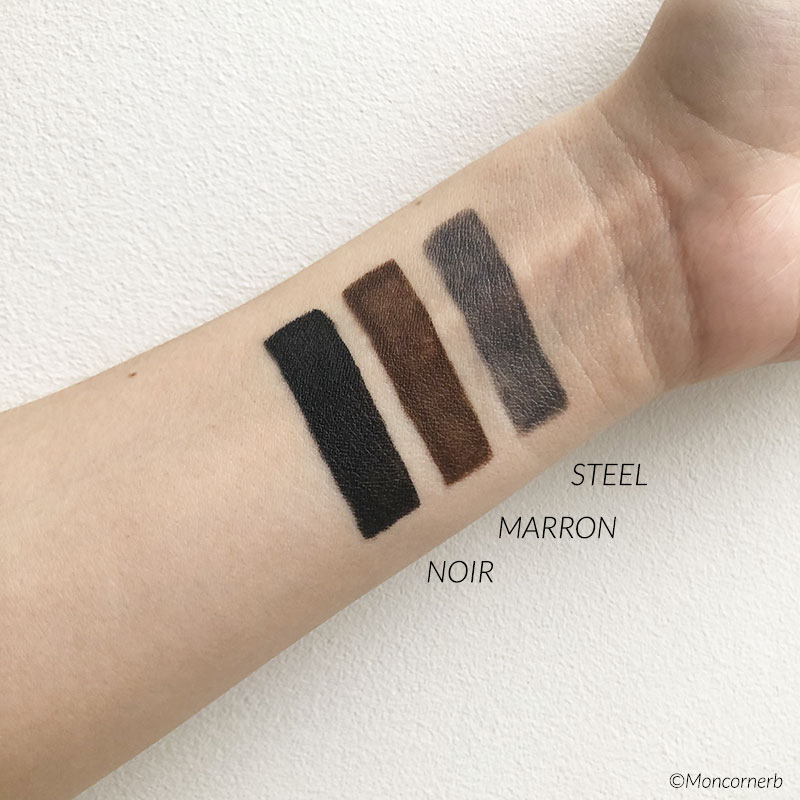 J’apprécie la texture qui glisse facilement sur la peau et donne un tracé eye-liner très satisfaisant. Le noir est très pigmenté.