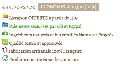 Des produits fabriqués par méthode SAF, la saponification à froid qui permet par sa température, aux alentours de 40°C, de conserver toutes les propriétés de son ingrédient principal : l’huile d’olive Bio. Cette méthode permet de produire des savons surgras (9 %), respectueux des peaux normales, mais aussi des peaux grasses ou sèches sans compromettre la mousse qui elle provient d’un corps gras naturel, la glycérine végétale. Tous ces savons conviennent aussi parfaitement aux cheveux et font office de shampoing.
