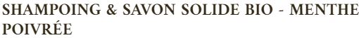 - 1 shampoing & savon solide bio à la menthe poivrée – 100 grammes
