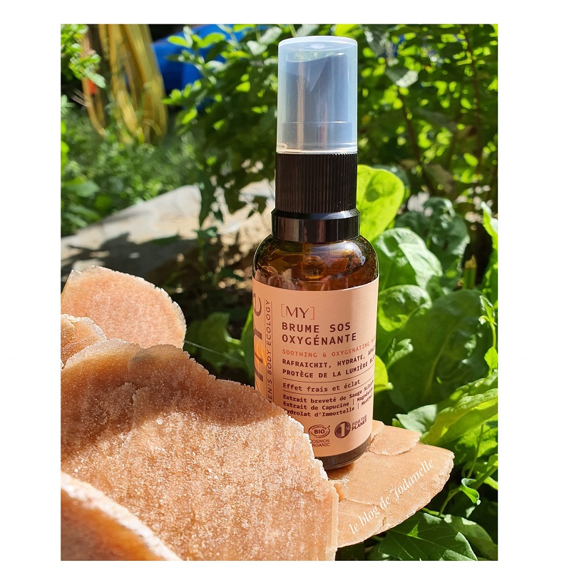 Une présentation de cette marque dont les soins pourraient vous intéresser… mais j’ai choisi ce petit flacon pour sa dénomination [MY] BRUME SOS OXYGÉNANTE et l’effet rafraîchissement qu’il laissait entendre. Je n’ai pas eu tort.