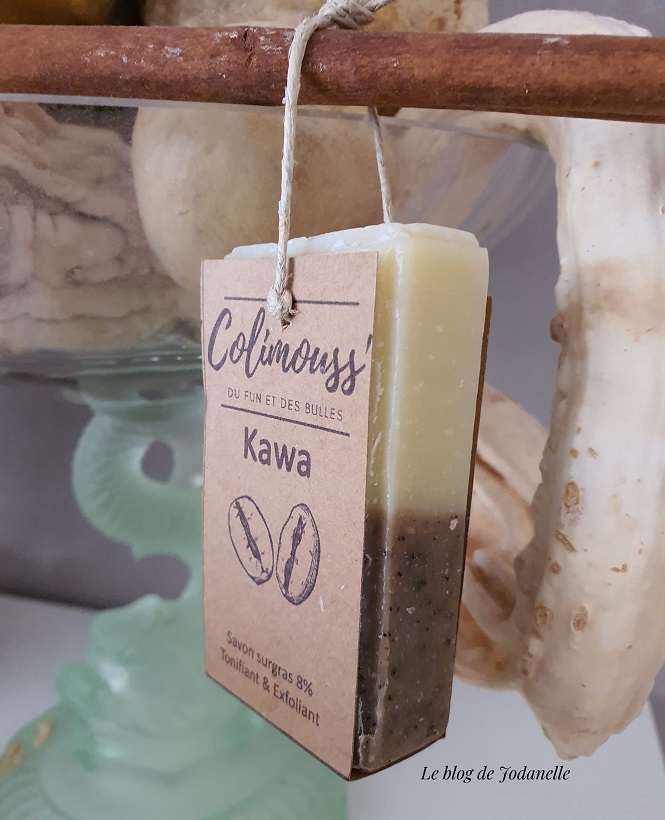 Conseil de la savonnière «Exfolier votre peau une fois par semaine avec le Kawa. Alterner avec un savon plus doux. Vous pouvez séparer la partie crémeuse de la partie exfoliante pour avoir deux savons aux deux actions bien différentes.»