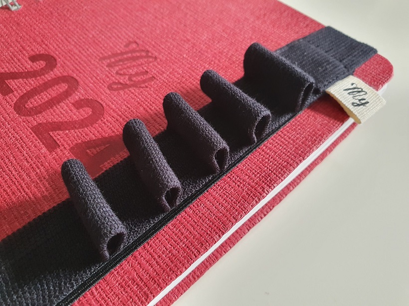 Terminé la recherche des stylos au fond du sac ! Un outil minimaliste ingénieux pour avoir avec soi le total nécessaire, cet élastique permet de ranger 5 stylos ou crayons, tout en maintenant l’agenda bien fermé.