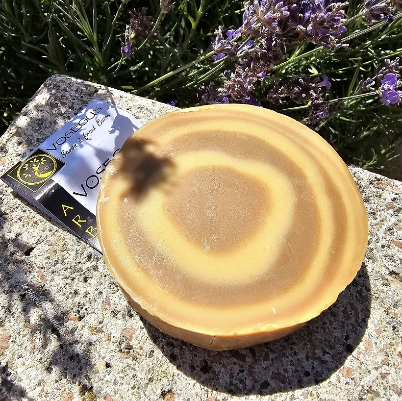 Les Mirabelles, incorporées fraîches dans ce savon, sont récoltées au pied de la Colline de Sion, haut lieu historique et légendaire de Lorraine {je connais bien ce lieu}